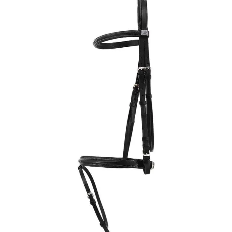 Sa muserolle et sa têtière sont arrondies et disposent d’une surpiqûre et d’un joli motif brodé à l’avant. La bouclerie est argentée pour un look chic.