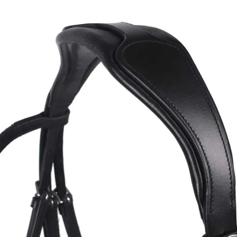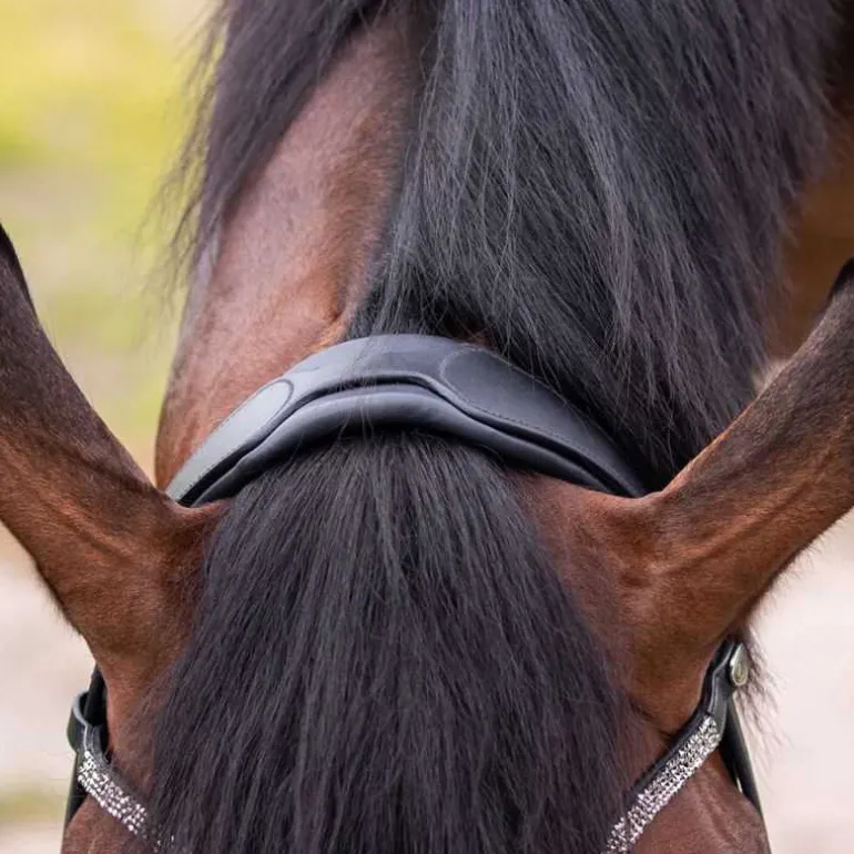 En plus d’être élégant, le bridon Lupine QHP est très confortable pour votre cheval avec sa muserolle large rembourrée et sa têtière anatomique rembourrée et souple parfaitement adaptée à la morphologie du cheval.
