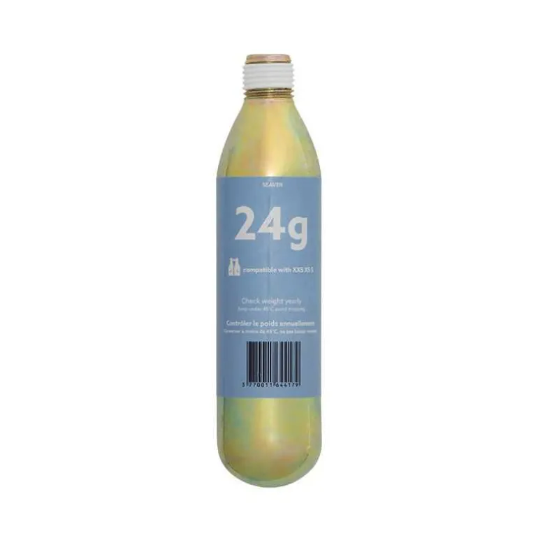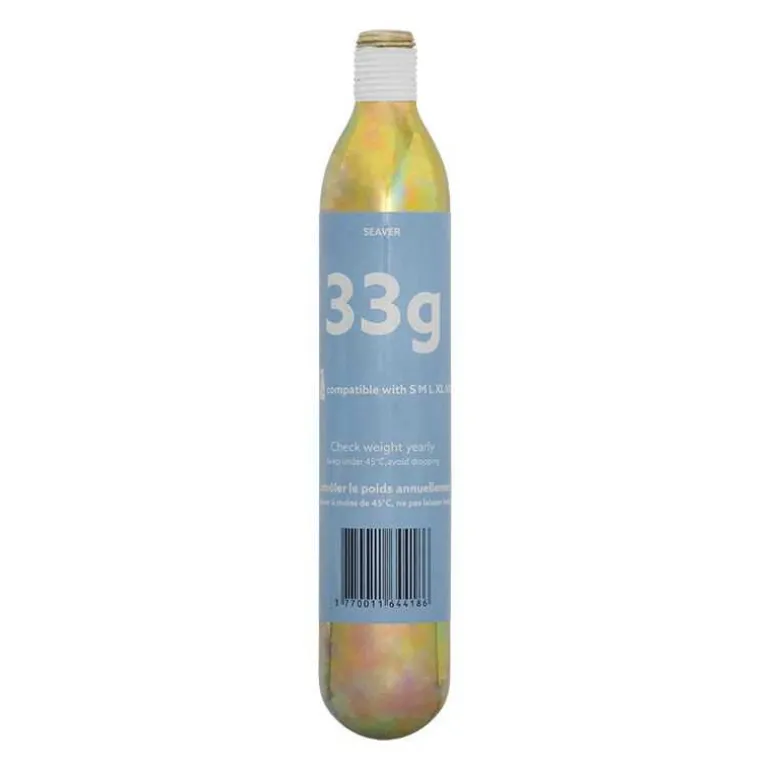 Capacité : La capacité de la cartouche et ainsi le volume de gaz qu’elle contient varie selon les modèles. 24g de CO2 par cartouche ou 33g de CO2 par cartouche.