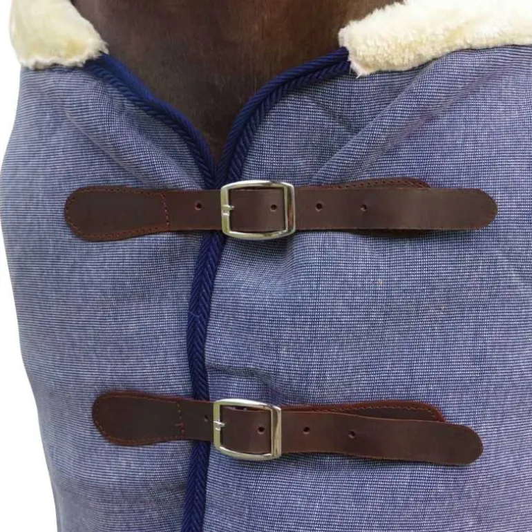 Fermeture de poitrail par 2 lanières en cuir avec boucles.