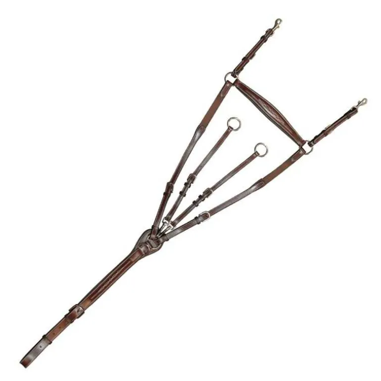 Élastiques latéraux avec fourche de matingale ajustable et amovible, fixée par mousquetons.