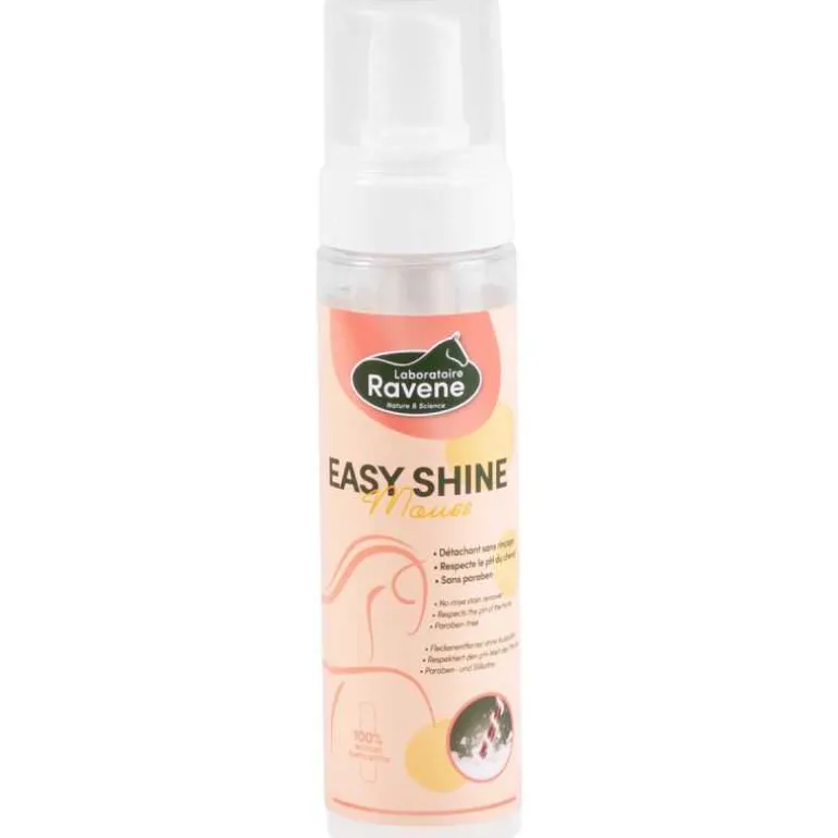 Easy Shine Mouss Ravene est un détachant sans rinçage spécialement conçu pour nettoyer votre cheval rapidement, sans eau.