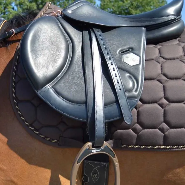 Les étrivières Stationata sont présentées en photo sur les selles Infinity Platinium et les étriers de la gamme Flex-on.