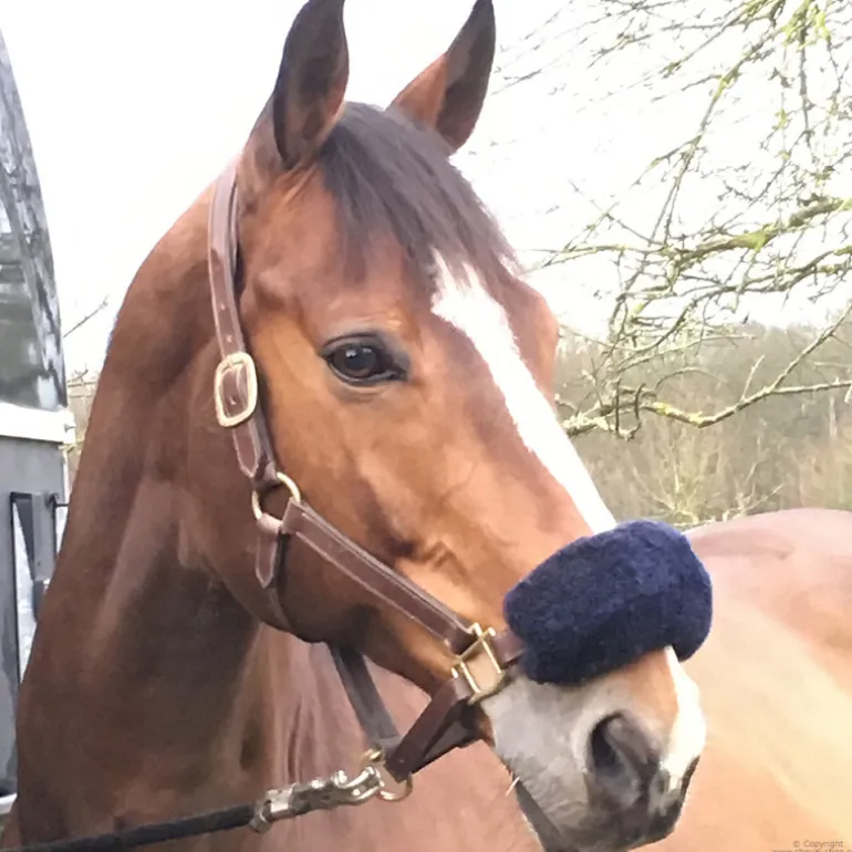 Fourreau de muserolle Stationata en véritable mouton, doux et confortable pour votre cheval.