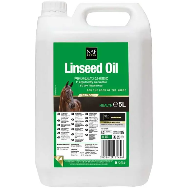 Boostez la vitalité et le bien-être de votre cheval avec l’huile de lin NAF, le complément idéal pour une digestion saine, une robe éclatante et des sabots en pleine santé !