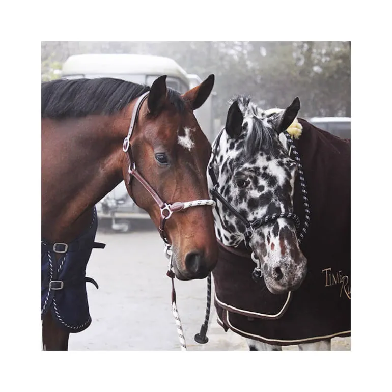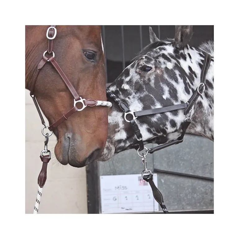 Le licol Stationata en cuir avec sa muserolle en corde apporta une touche d’originalité à votre look.
