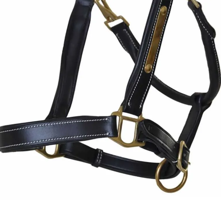 Le licol en cuir surpiqué avec plaque T de T est doté d’une têtière anatomique et d’une doublure en cuir associée à un matelassage ultrasoft sur la muserolle, les montants et la têtière, offrant un confort remarquable pour le cheval, même lors d’un port prolongé.