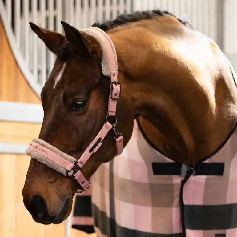 Douceur et confort avec le licol mouton Eskadron Platinium Edition, un licol en nylon très résistant avec têtière ajustable par boucle des 2 côtés de la tête et muserolle réglable par boucle.