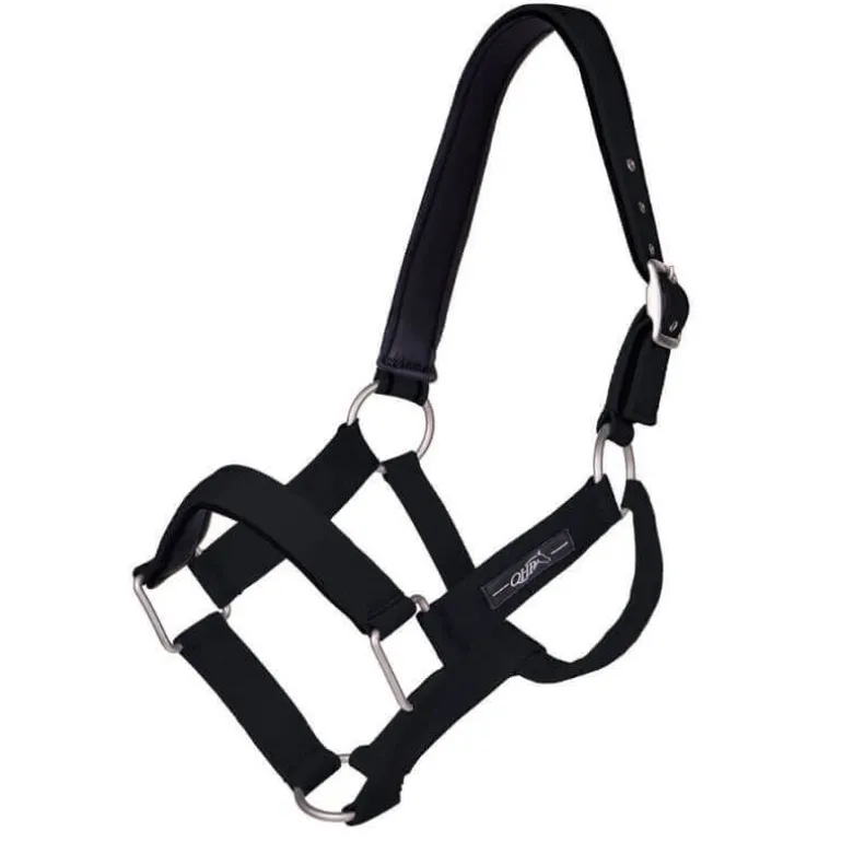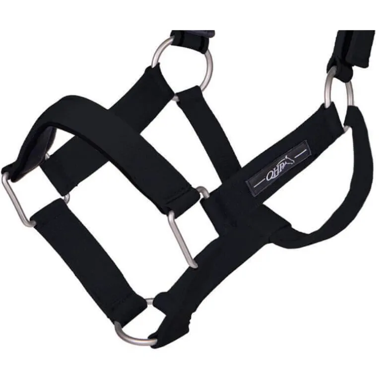 Ce licol en nylon robuste de chez QHP convient parfaitement pouir les jeunes chevaux.