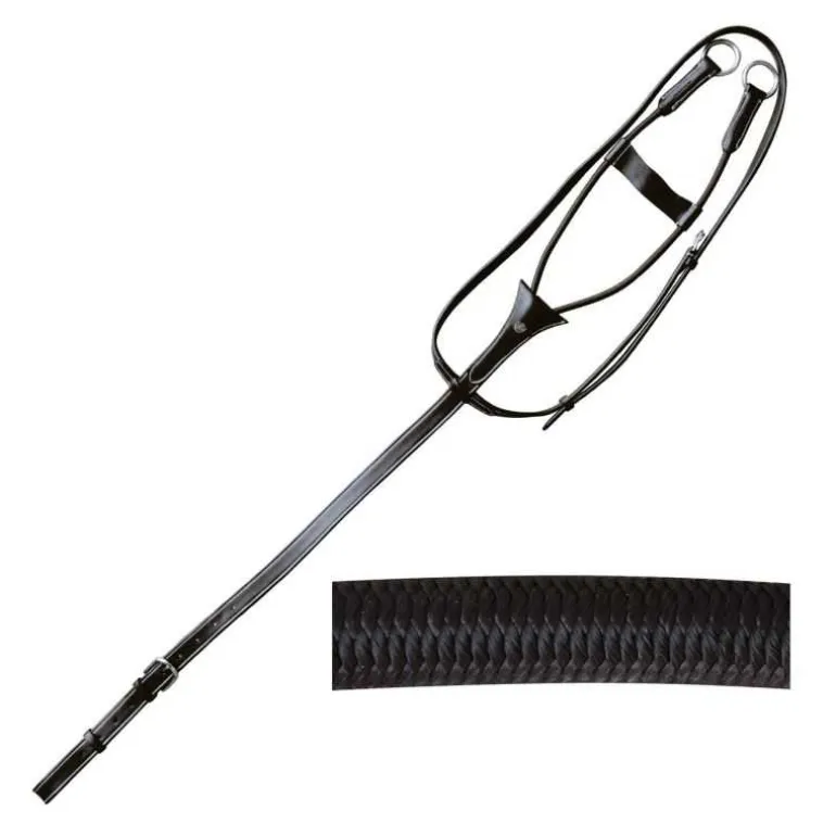 Martingale élastique Flags&Cup, à anneaux, en cuir doublé et bouclerie inox.