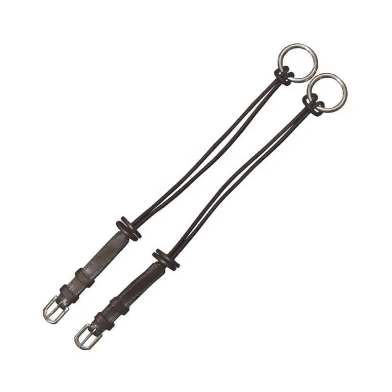 Montants de releveur Flags&Cup en cuir et corde nylon, bouclerie inox, spécialement conçus pour être utilisés avec un mors releveur pour un effet coulissant et progressif.
