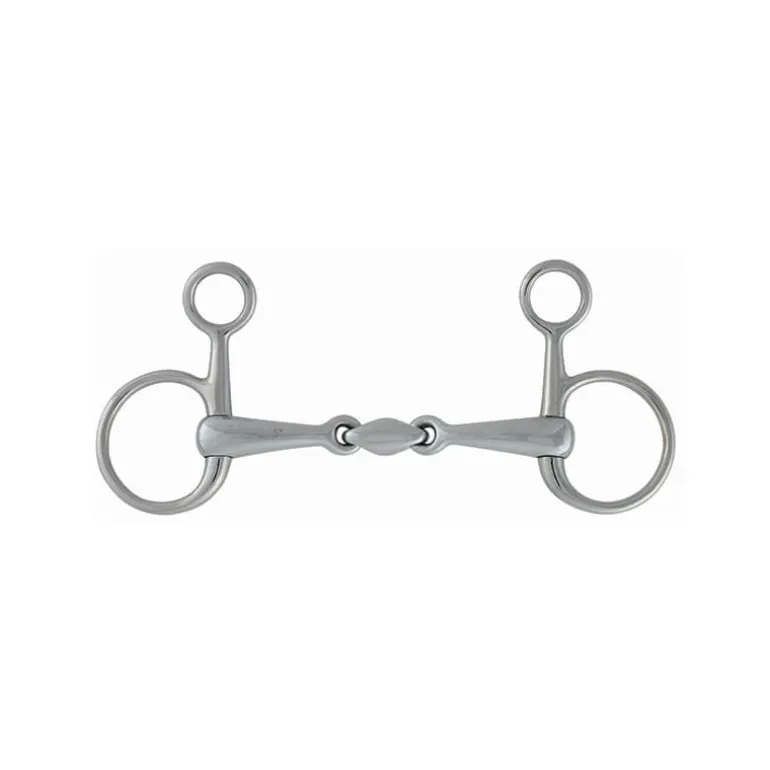 La double brisure permet au mors de s’adapter au mieux à la forme de la bouche et de ne pas mettre de point de pression sur le palais du cheval.