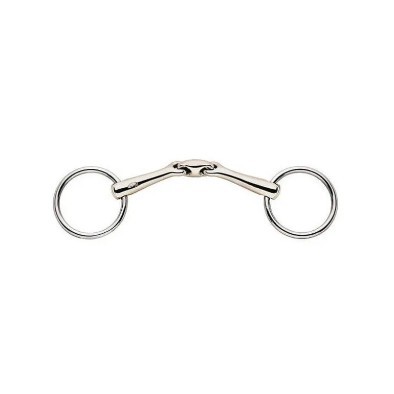 Il est équipé d’une double brisure pour s’adapter au mieux à la bouche du cheval et apporter du confort en enlevant les pressions sur le palais et la langue.