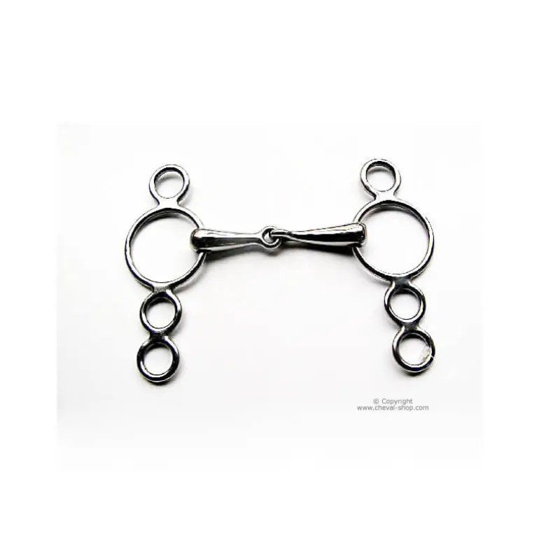 Les quatre anneaux peuvent avoir différentes utilisations, avec un effet levier ou releveur variable en fonction de la position de la rêne sur les anneaux.