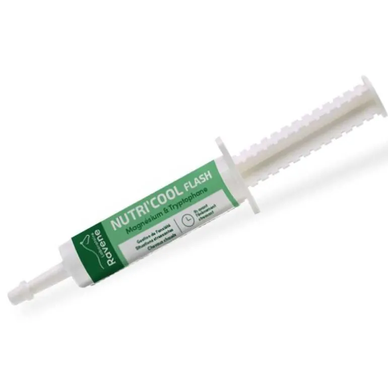 Pour la gestion du stress ponctuel des chevaux sensibles ou réactifs, Nutri Cool Flash Ravene associe le magnésium et le tryptophane pour favoriser un comportement calme du cheval dans les situations stressantes, inhabituelles, sans nuire à la concentration ou à la performance.