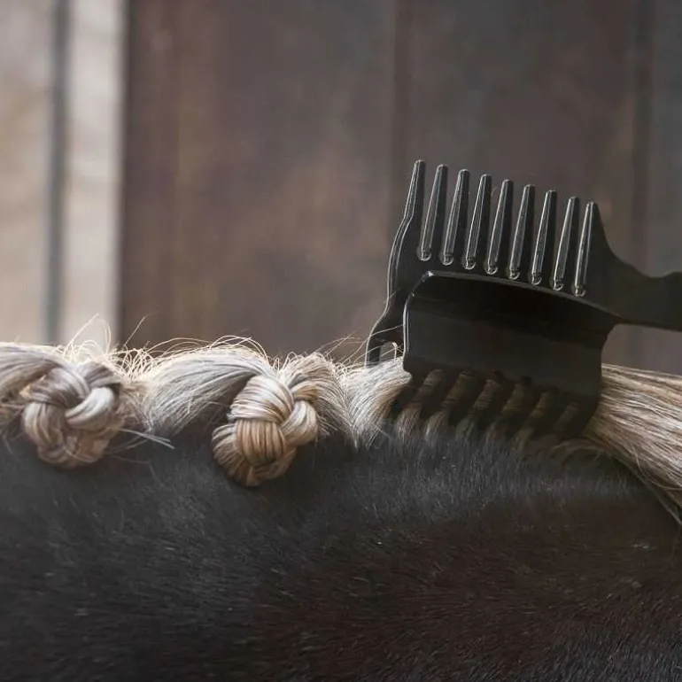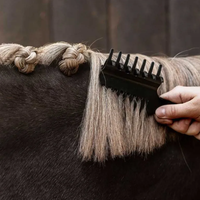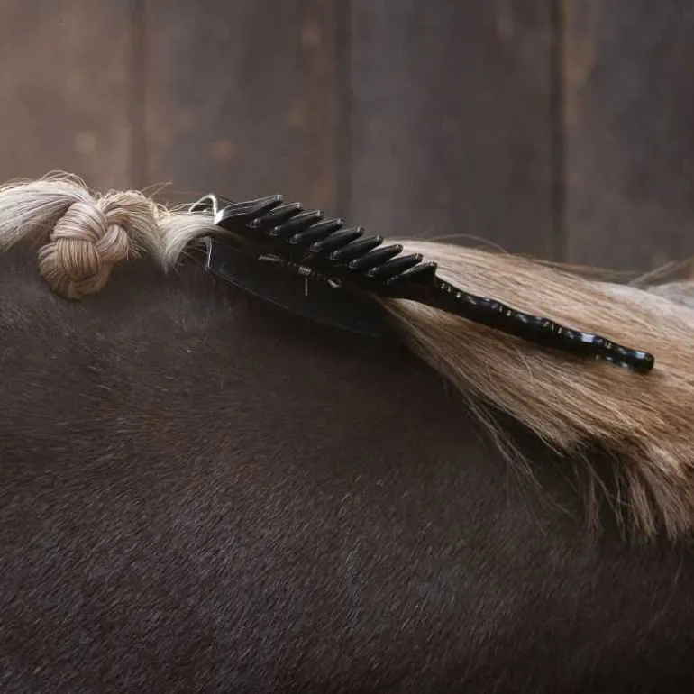 Pour un nattage parfaitement réussi de la crinière, le peigne à crinière avec pince QHP est l’accessoire magique !