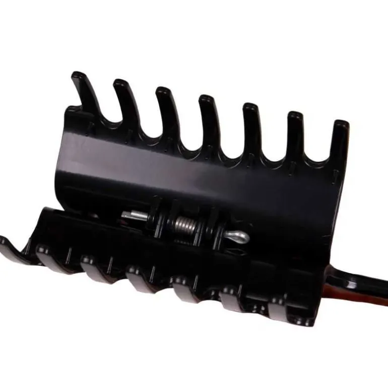 Avec le peigne, vous réalisez des sections régulières, avec la pince vous maintenez la crinière en place sans être gêné et avec l’œillet situé dans le manche, vous avez toujours vos élastiques à portée de main.