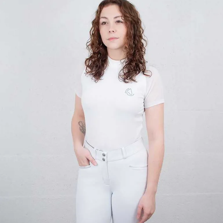 Son tissu stretch et ses manches en tissu mesh font du polo de concours pour femme Silvana Time to Ride un vêtement confortable et respirant.