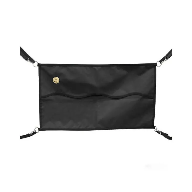 Broderie For Stable, porte bordée d’un galon ton sur ton, avec rabat. 4 anneaux avec mousquetons en acier dans les angles pour fixer la porte.