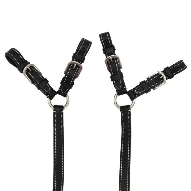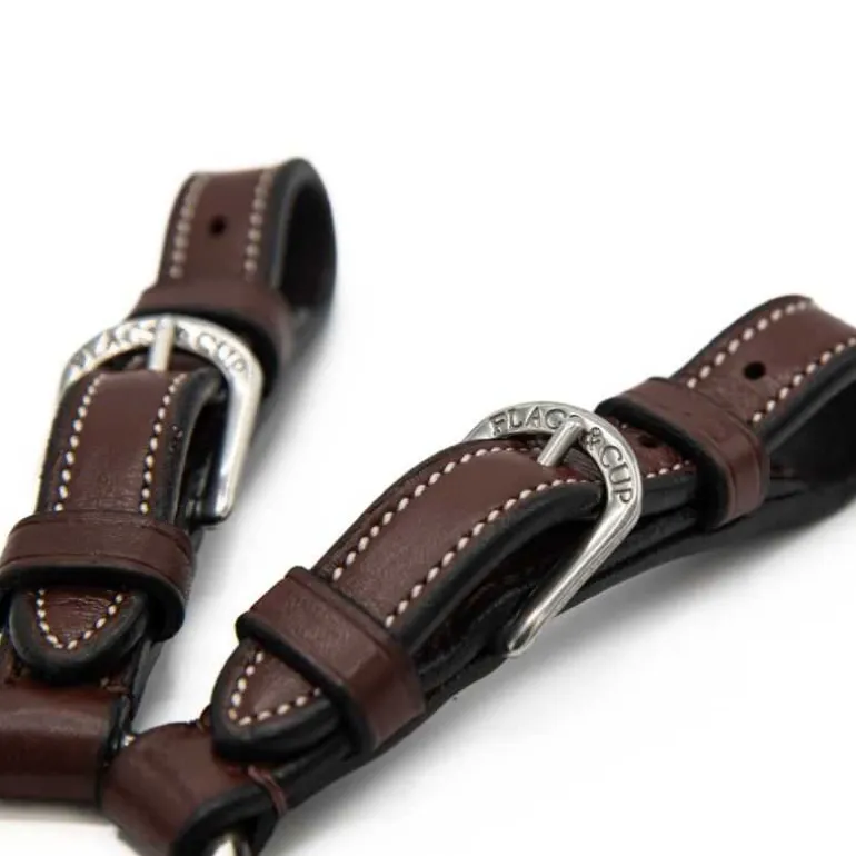 Rênes à alliance Flags&Cup, en cuir et caoutchouc. Ces rênes sont terminées par des alliances combinées, idéales dans l’utilisation d’un mors Pelham.
