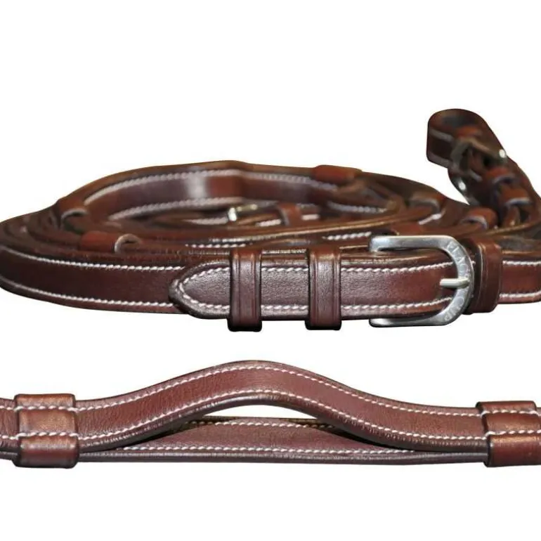 Rênes cuir à poignées Flags&Cup, en cuir souple.