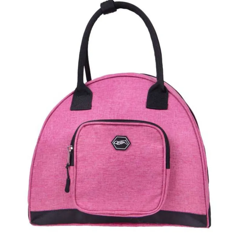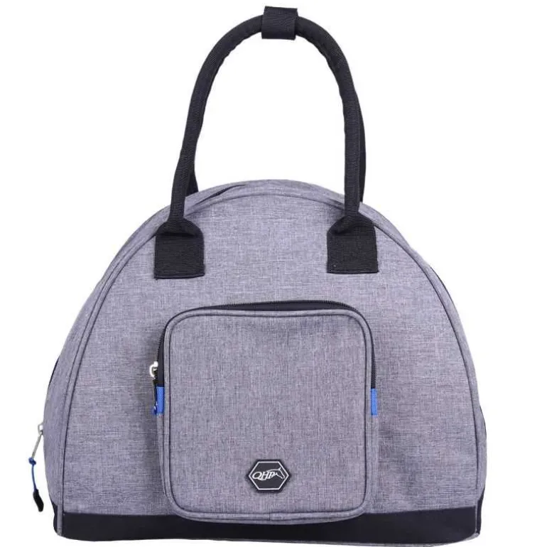 Joli sac à casque QHP en polyester hydrofuge, résistant et rembourré aux coloris légèrement chinés, pour protéger, transporter et ranger votre casque avec style.