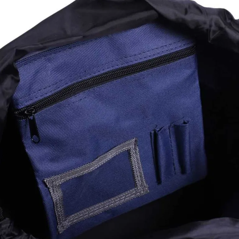 A l’intérieur, dans l’espace central vous aurez toute la place nécessaire pour ranger le reste de votre équipement de pansage ainsi qu’une poche intérieure zippée avec une pochette transparente pour cartes et deux passants pour stylos idéale pour ranger les petits objets.