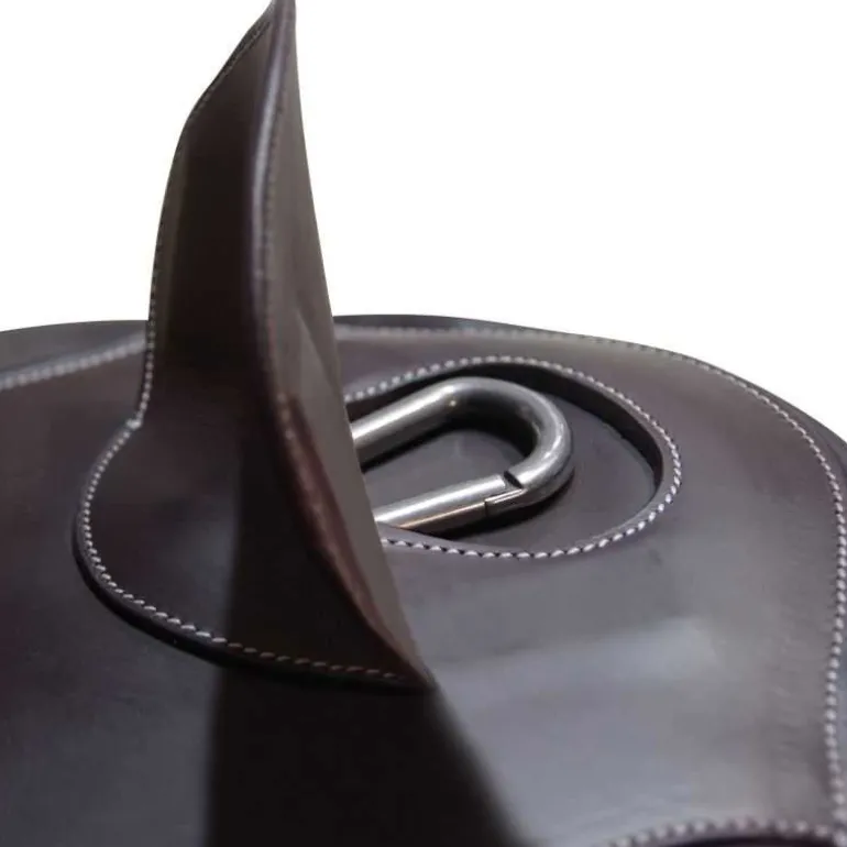 ♦ Mousqueton central d’attache de martingale avec empiècement de protection en cuir magnétique