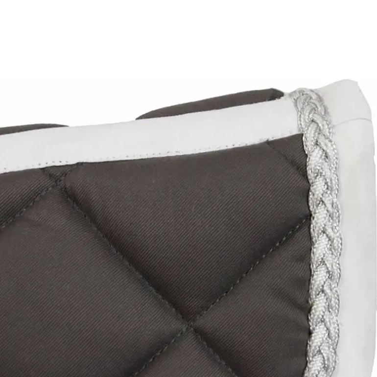 Surpiqûres losanges classiques, passepoil tressé bicolore.