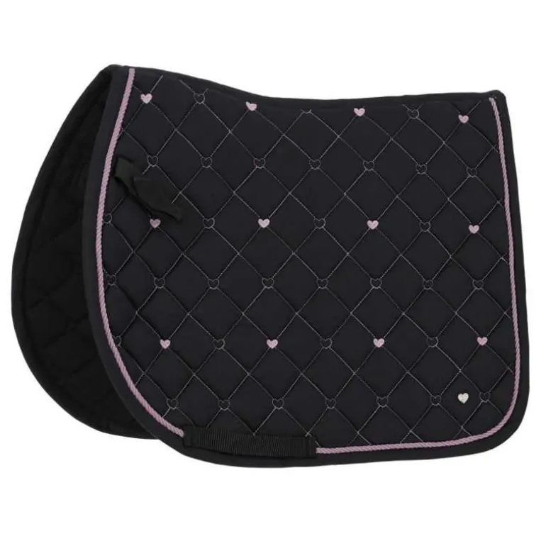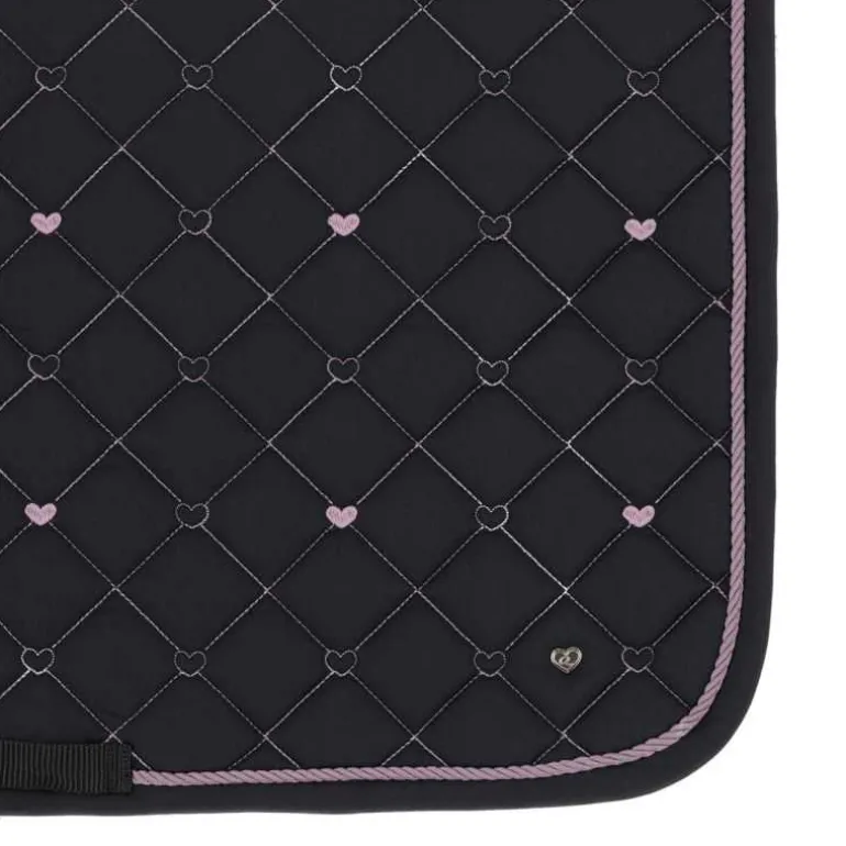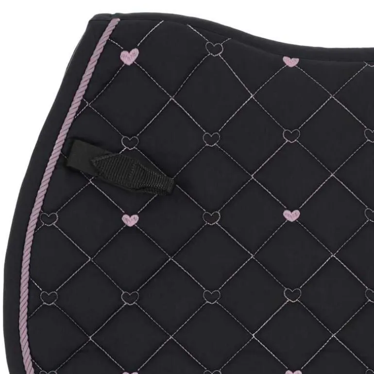 Avec ses petits coeurs et son joli cordon décoratif, le tapis de selle poney Lize QHP est adorable.