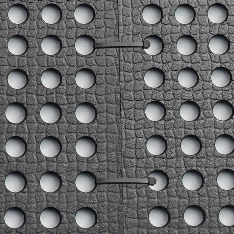 Résistants aux intempéries et aux U.V, la zone sous le tapis est équipée de crampons qui minimisent le glissement du tapis.
