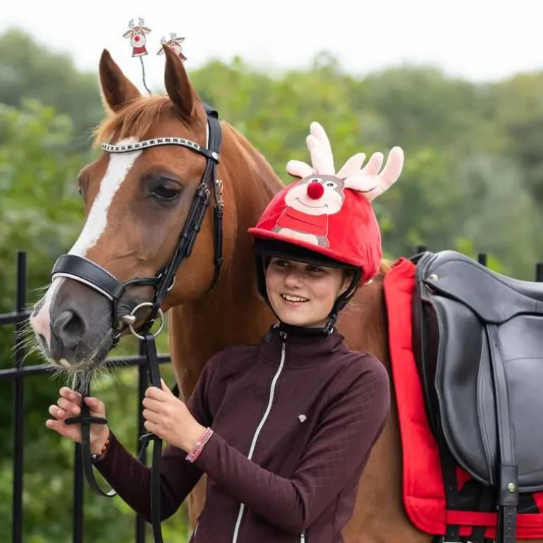 Pour un look total Noël, complétez votre tenue en habillant votre casque de cette jolie toque aux motifs rigolos.